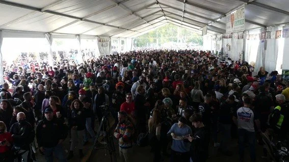 La carpa llena de moteros esta mañana