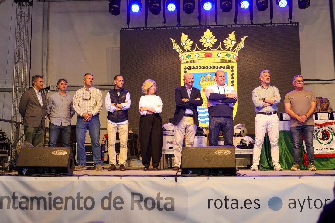 En el escenario de la carpa central del recinto ferial, que desde el viernes ha sido el epicentro de esta concentración de motos, han estado el alcalde de Rota, Javier Ruiz Arana, el delegado territorial de Medio Ambiente y Sostenibilidad de la Junta de Andalucía, Óscar Curtido, la delegada de Turismo del Ayuntamiento de Rota, Esther García, concejales del PP, y miembros de la Armada e Infantería, como el capitán de navío jefe Daniel García Yáñez, el coronel comandante del Tercio Sur, Antonio Aguayo Lara, y el segundo comandante de la Unidad, el teniente coronel Antonio Díaz Pines-Mena. A todos ellos, además de a la Policía Local, Protección Civil, Guardia Civil y Policía Nacional, se les ha reconocido con un agradecimiento por parte del motoclub manifestando todos ellos la predisposición para seguir colaborando en futuras ediciones.