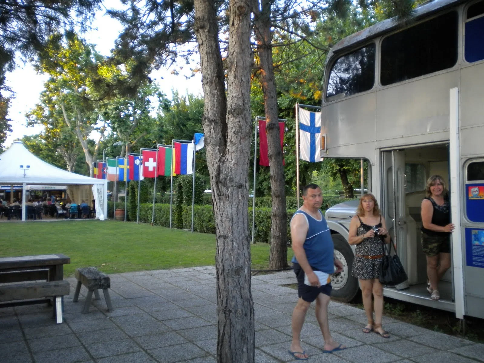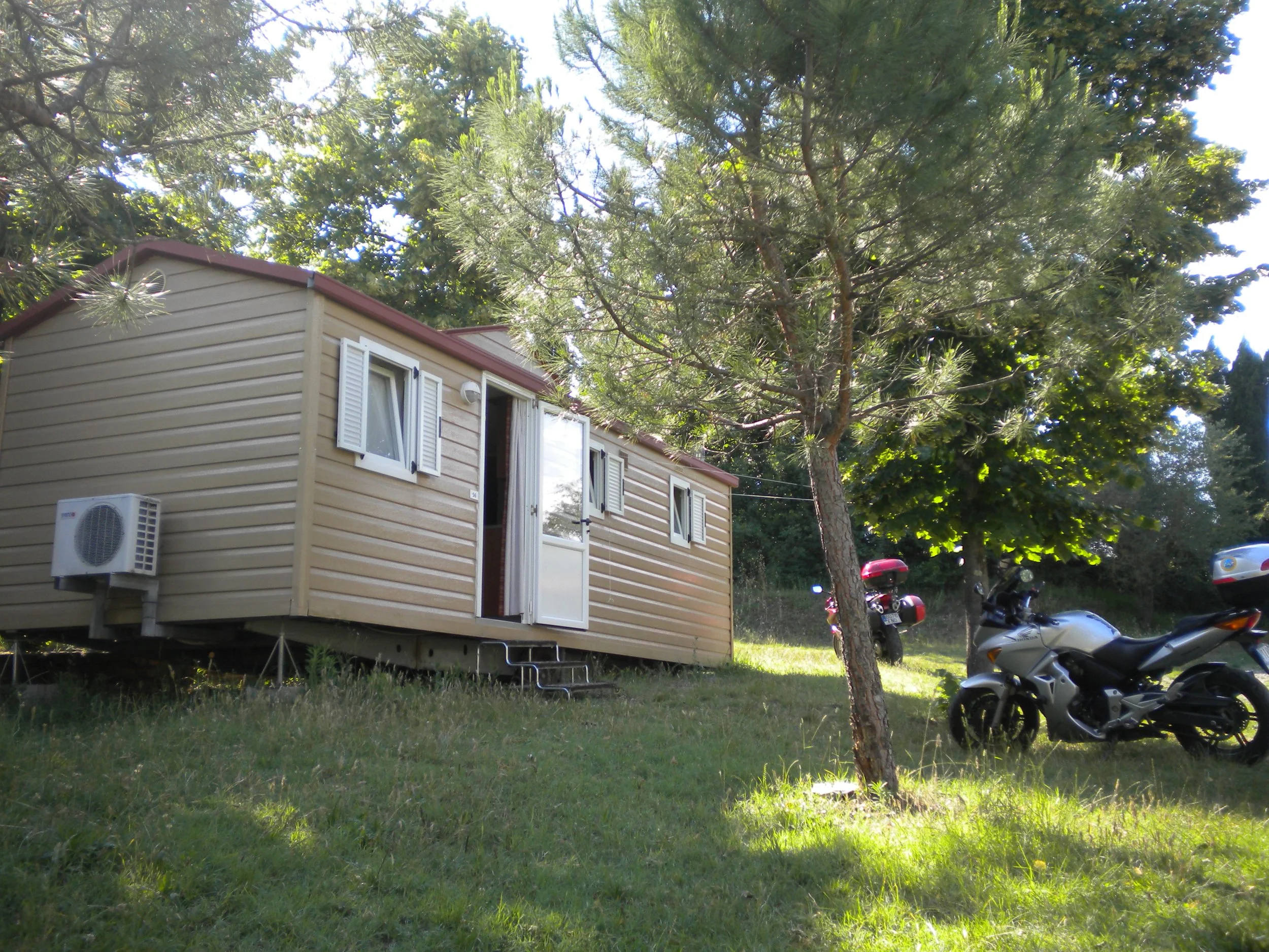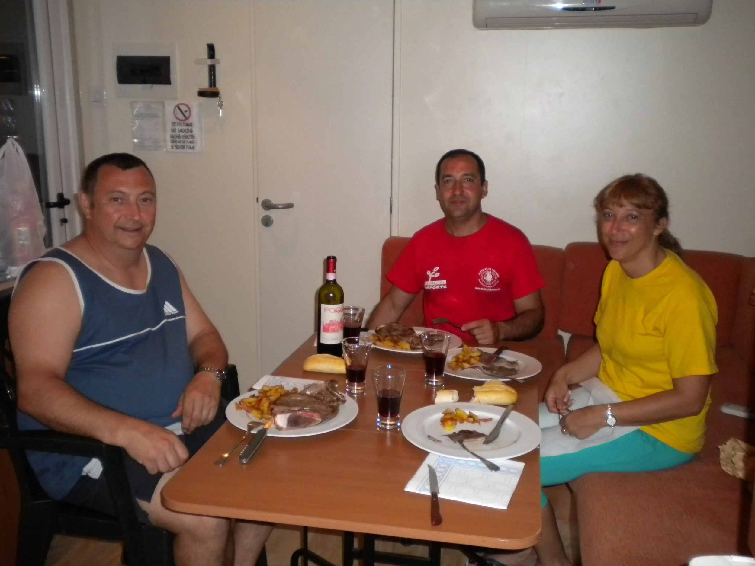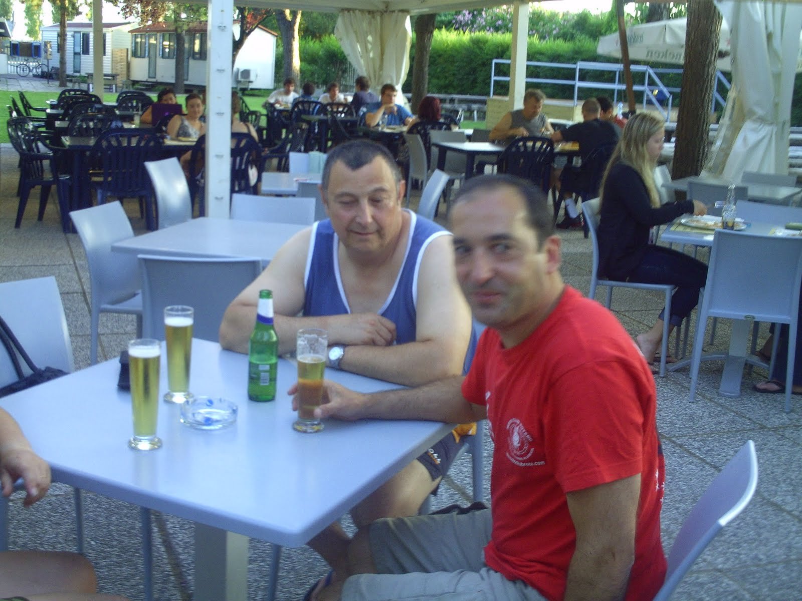 Vuelta al camping a las 19:00, compramos cuatro cosas para cenar en el carrefour, por cierto mas cutre imposible, y sacamos mesas fuera y cenamos delante de las habitaciones.