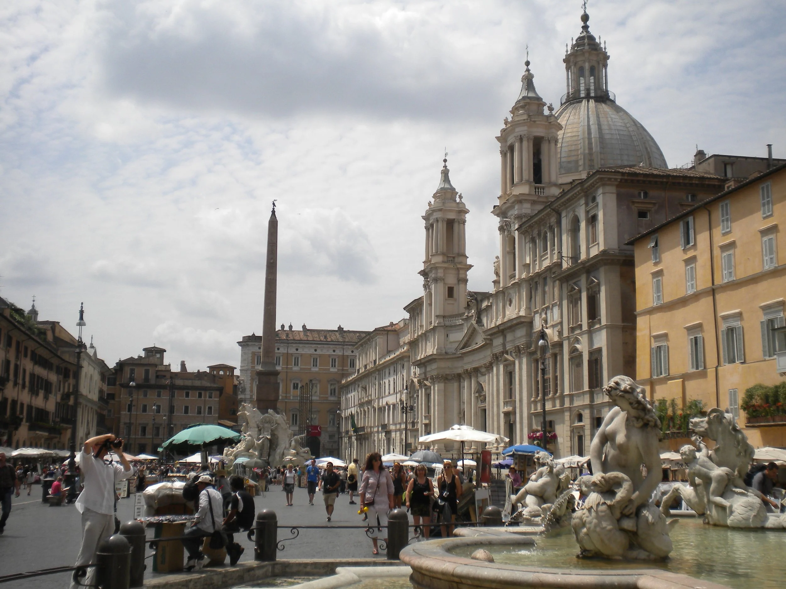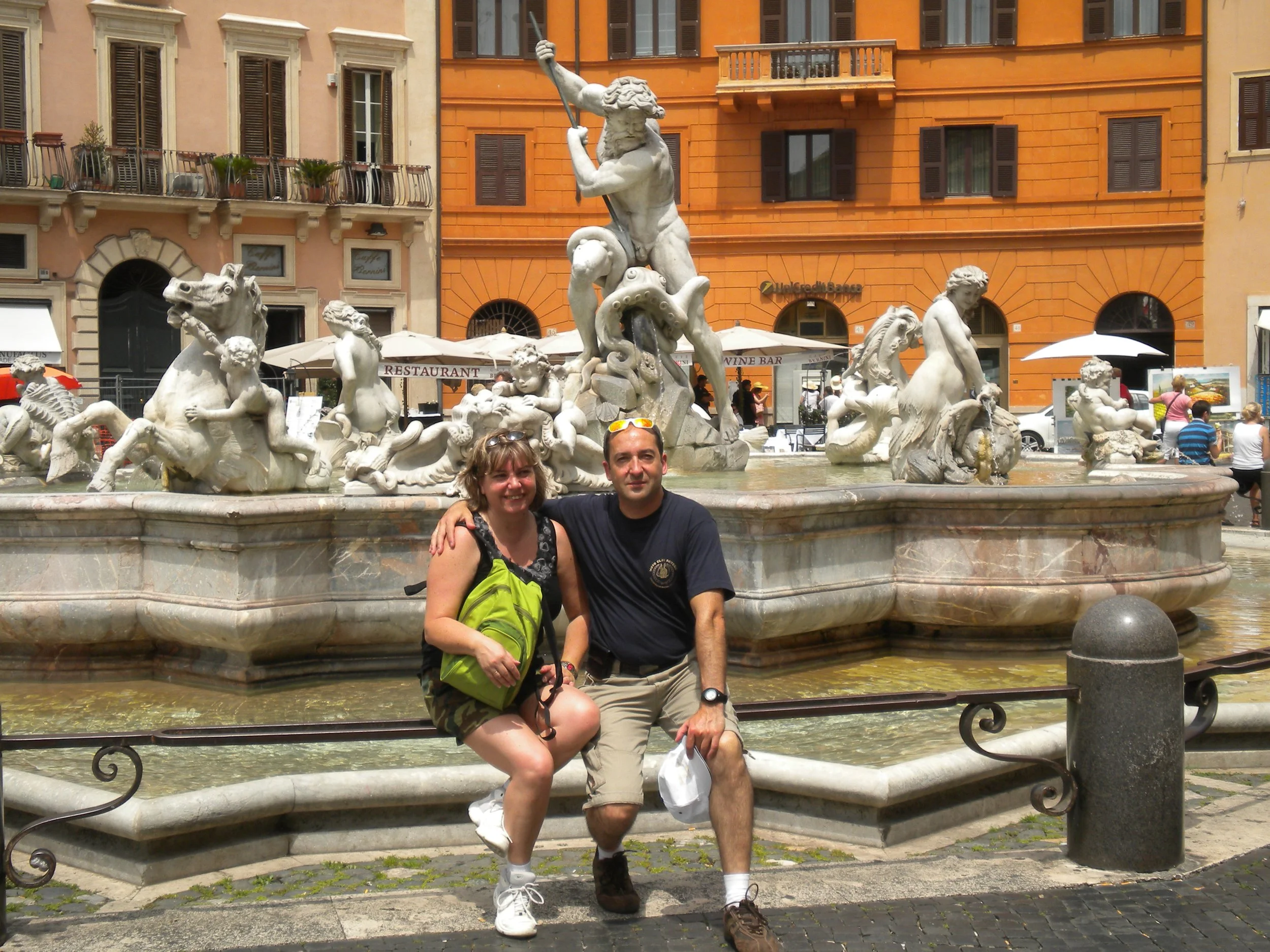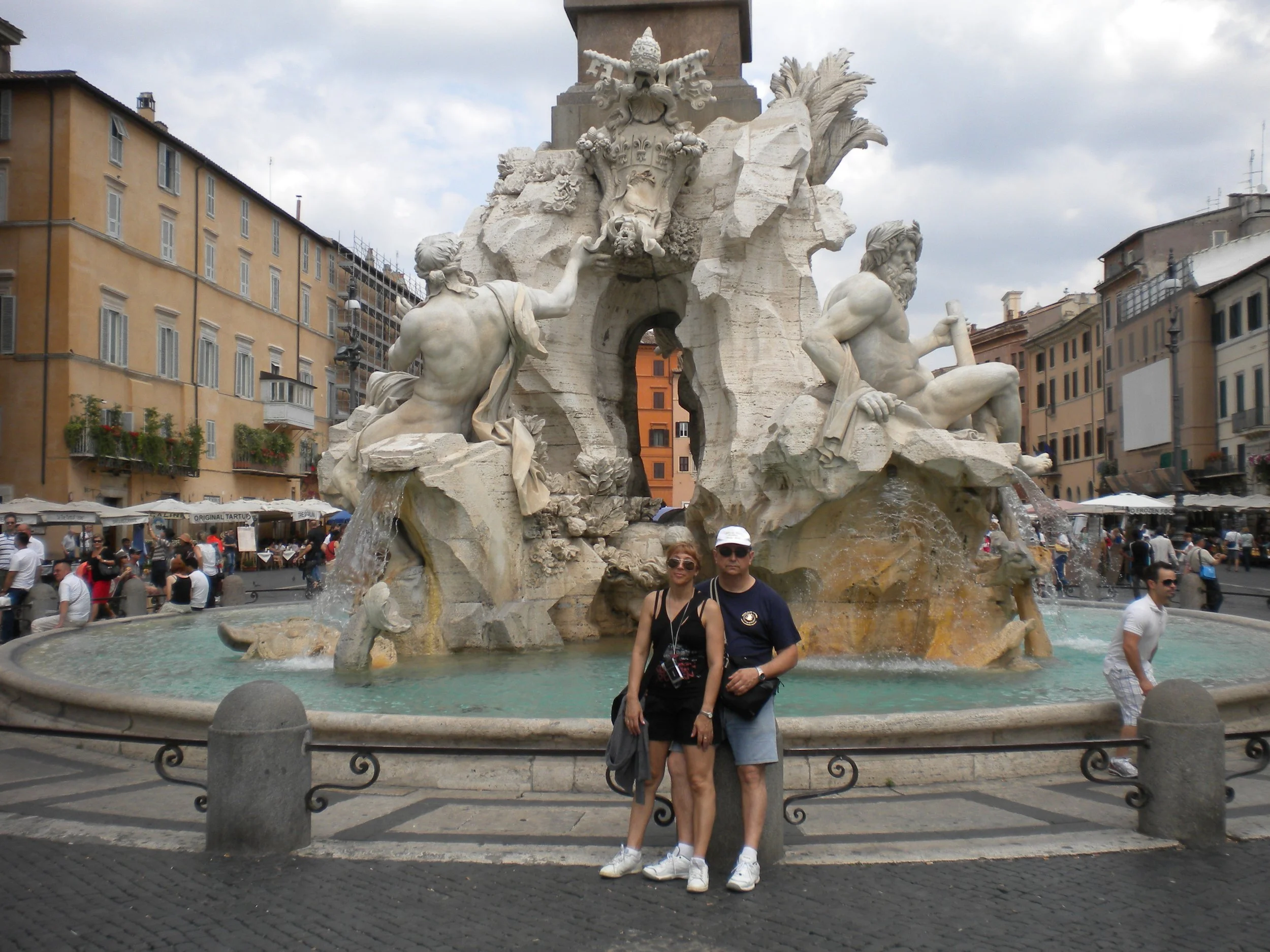 Seguimos hacia la plaza Navona ( llena de esculturas ), la Fontana del Moro, , la Fontana dei Quattro Fiumi y Fontana de Nettuno.
