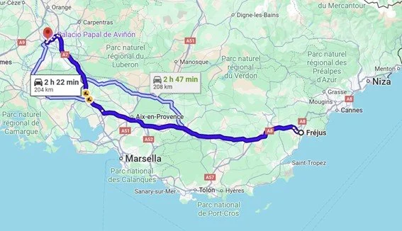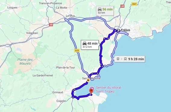 Mapa.: Fréjus- Saint Tropez- Fréjus