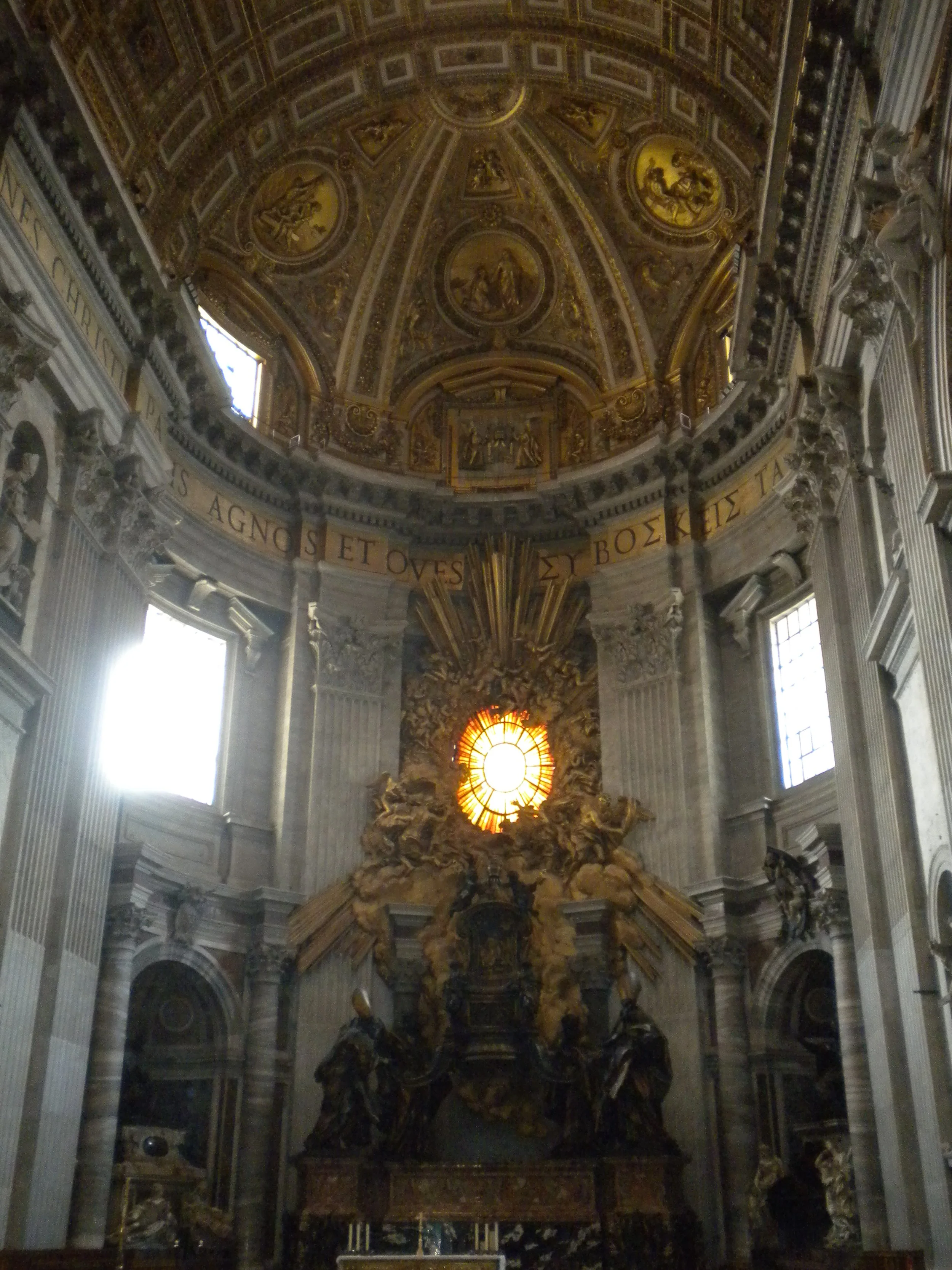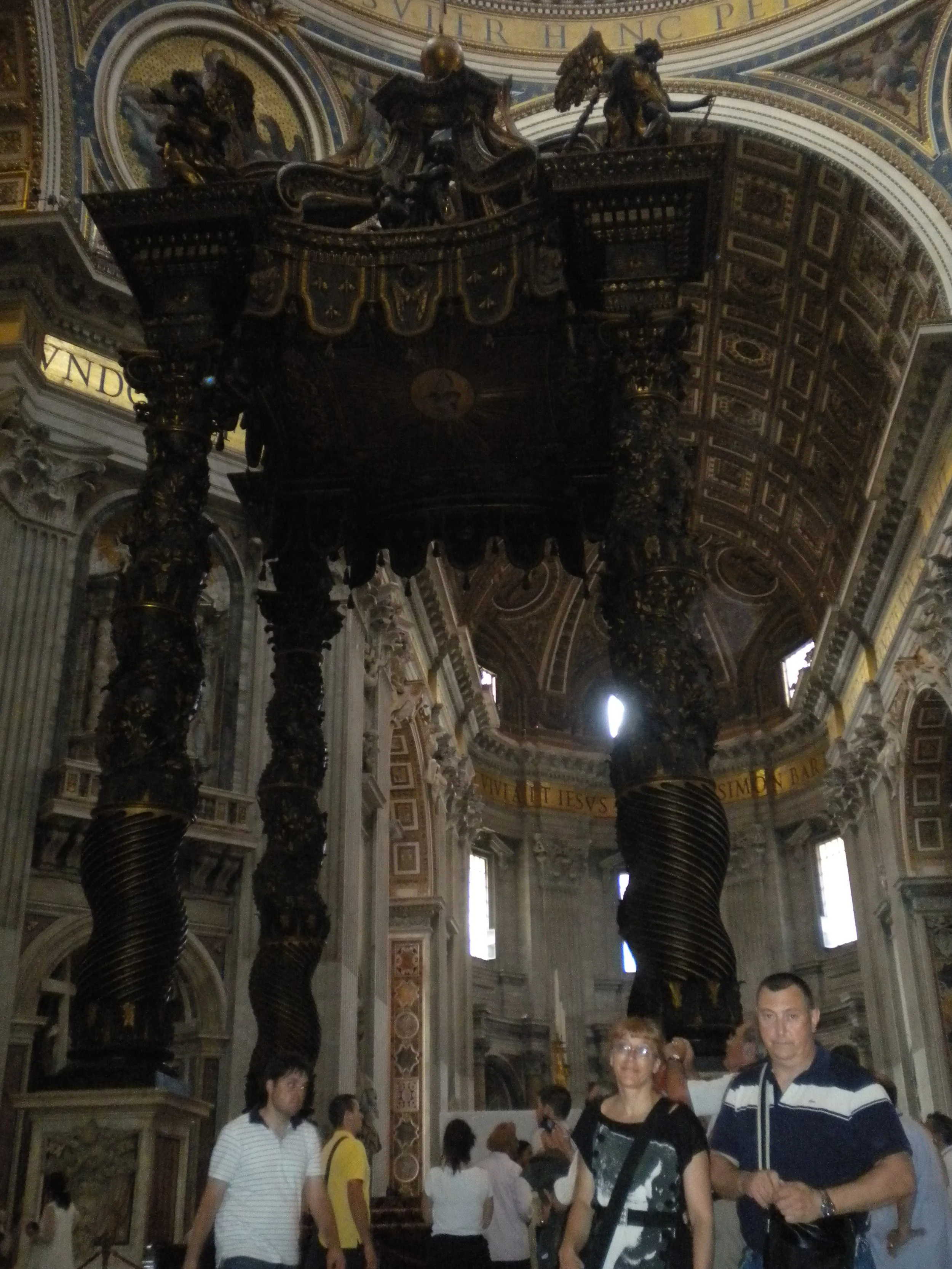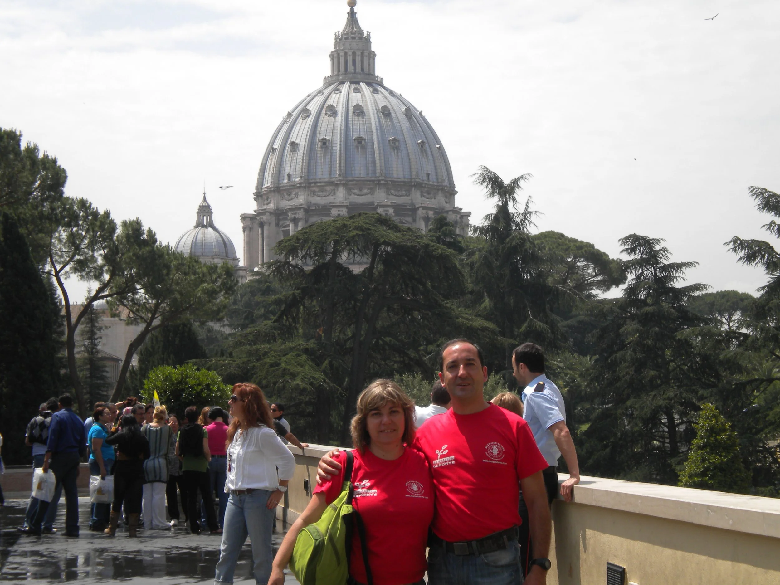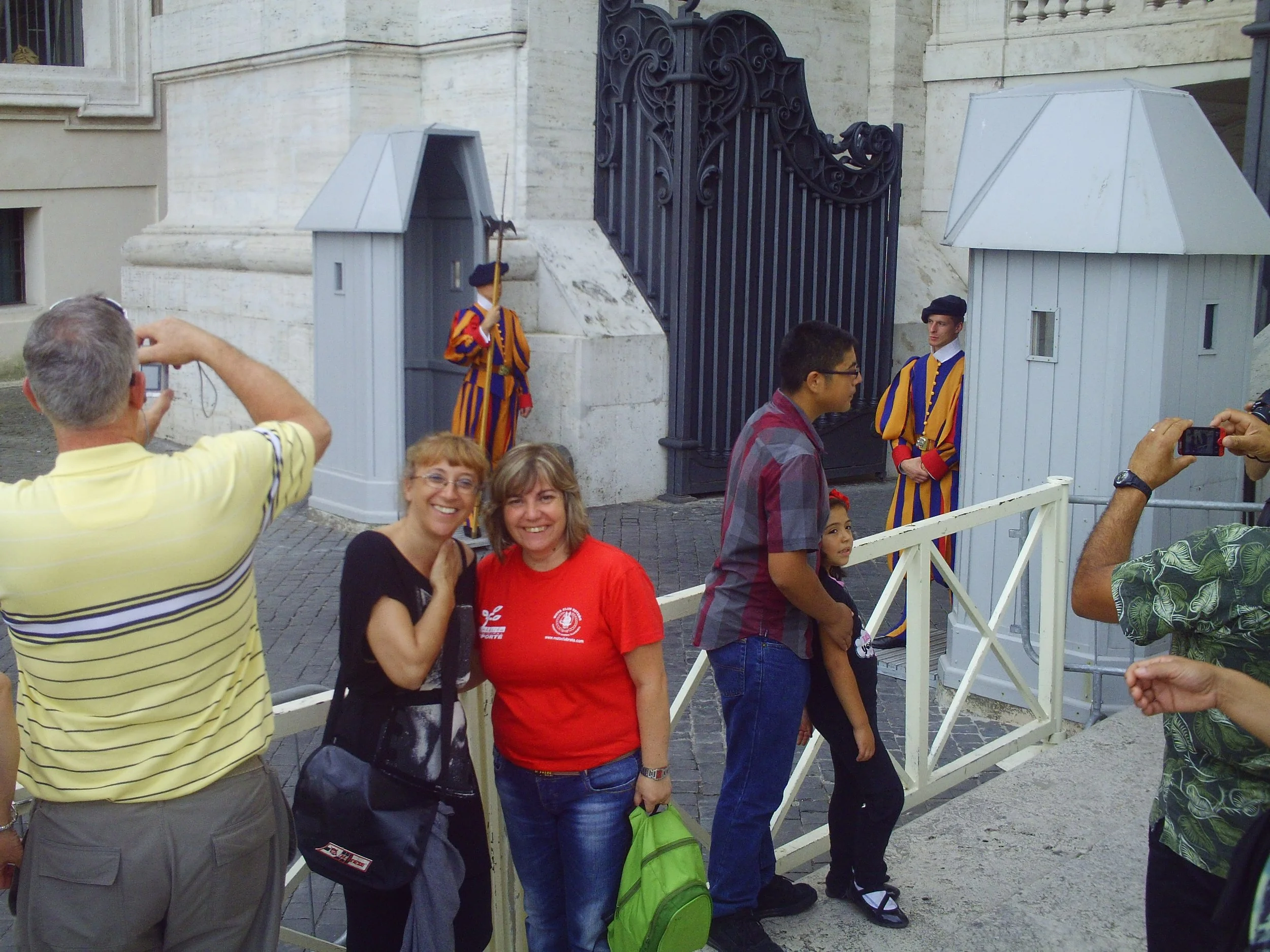 Tampoco hubo esperas, es indescriptible, también bajamos a los sótanos donde están las diferentes tumbas de los papas. Después de la caminata, nos sentamos fuera mientras Jose sube a la cúpula (ascensor+ 322 escalones 7 euros) (ascensor+540 escalones 5 euros), Fermín se echa una cabezadita y Tere y yo vemos el cambio de guardia.
