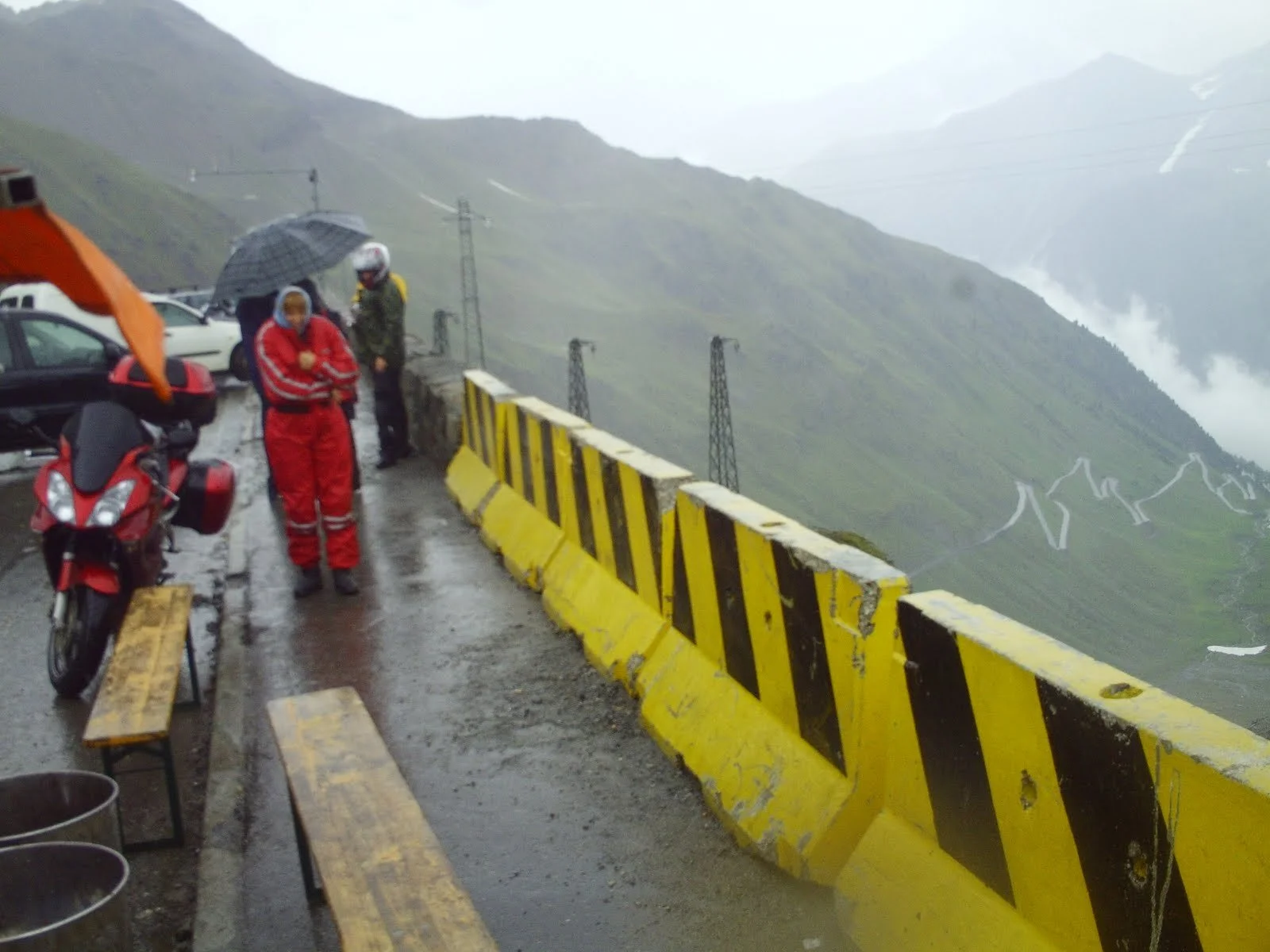 LLegan al pie del Monte y se encuentran con una carretera estrecha y con curvas cerradisimas, y a medida que van subiendo va empeorando, se cruzan con bastantes moteros y ciclistas, el tiempo también empeora, comienza a llover , hace frío, y en la cima hay nieve, se colocan los trajes de agua. Tere le va diciendo a Fermín si baja algún vehículo pues no hay espacio suficiente para cruzarse dos vehículos en las curvas, pues se tiene que abrir invadiendo el otro arcén.