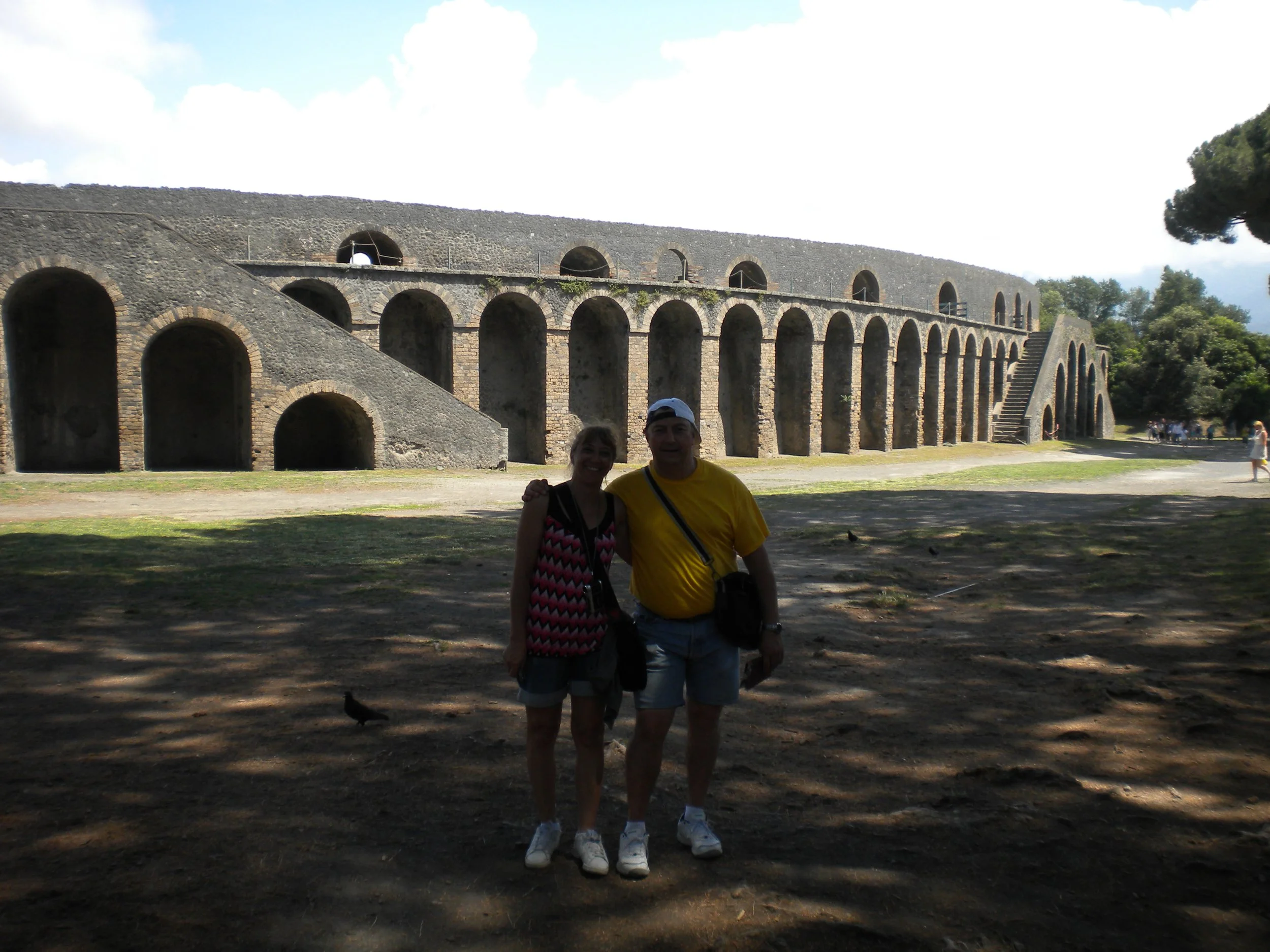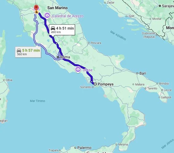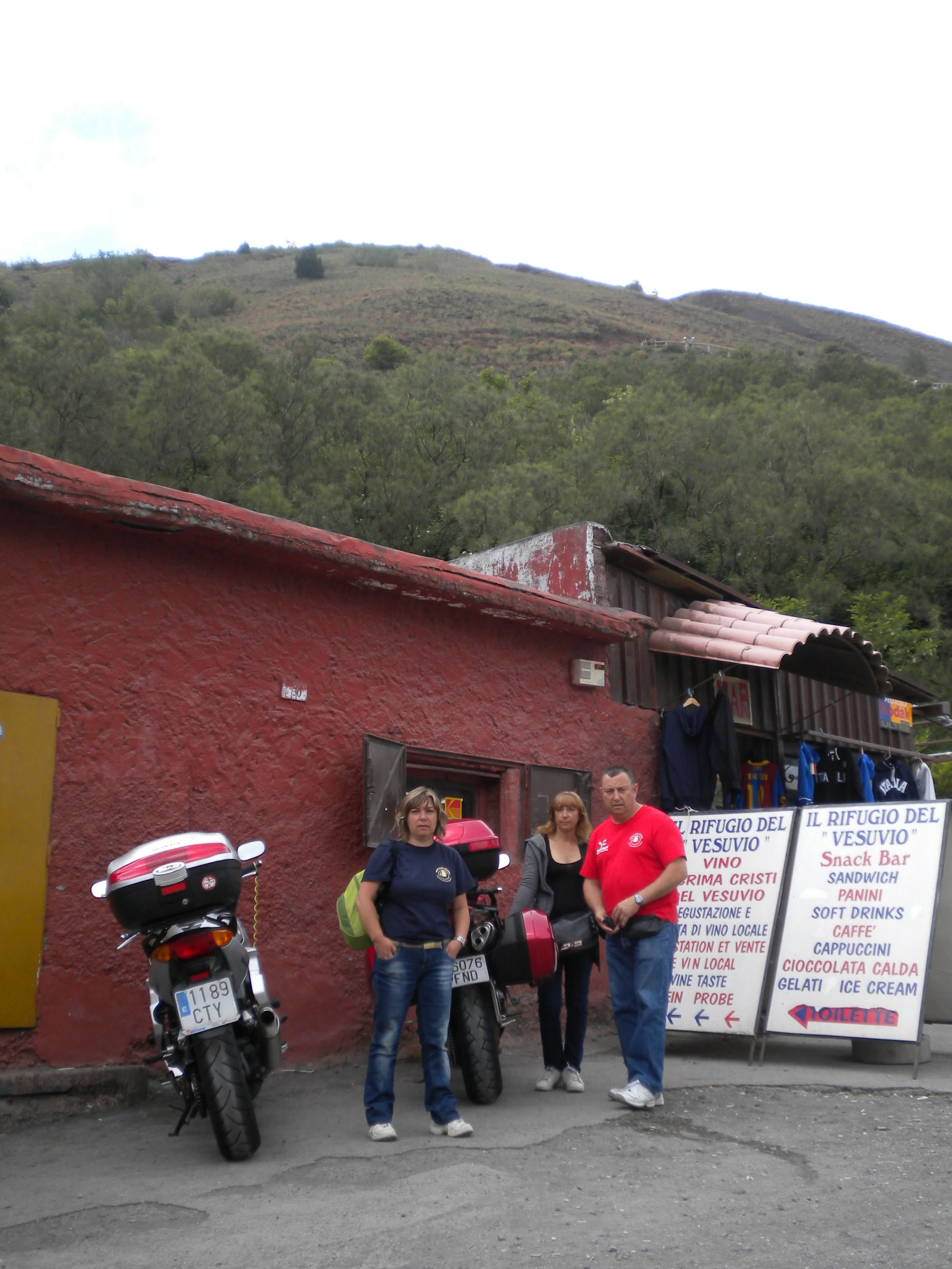 8:30 de la mañana, es día 8 de Junio, desayunamos , dejamos habitación y salimos dirección a Pompeya. La salida de Roma es un caos, coches, motos y más coches, Fermín avanza entre los coches y nosotros quedamos un poco retrasados nos toca un petardo que no nos deja pasar, paramos a repostar a las 11:00, a las 12:00 parada para café, y por fin llegamos a Pompeya a la 13:00. Nos registramos en el camping