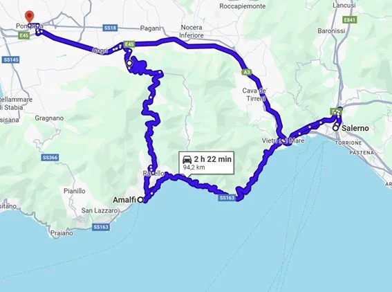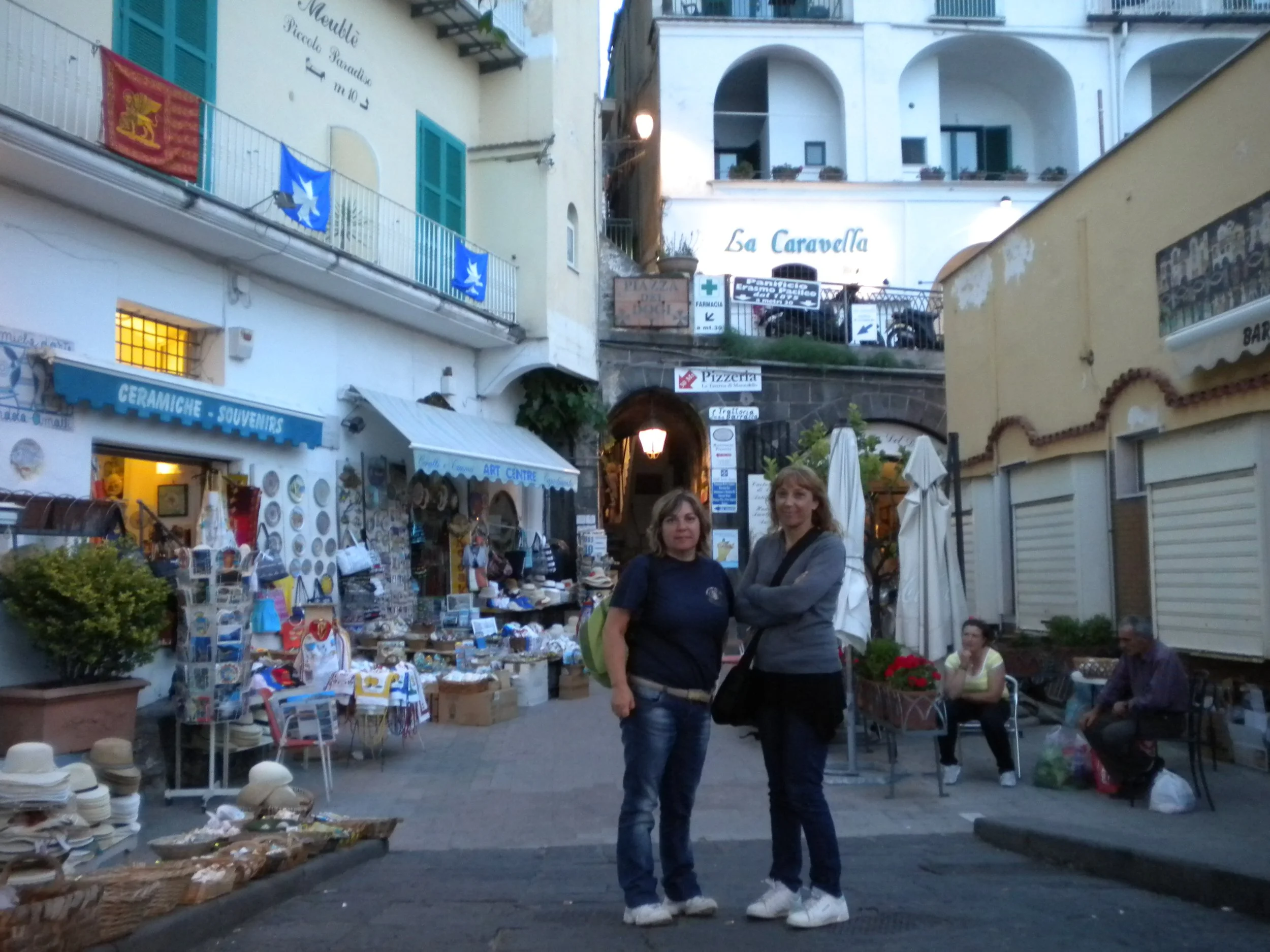 Está muy bien situado, pero cuando nos vamos a duchar, no hay agua caliente, vamos a recepción y en una hora está solucionado, luego nos damos una vuelta por el centro del pueblo, comemos unas pizzas Total 47 euros, regresamos al camping y descansamos un poco, esto me recuerda a España en los años 70. Son la 18:00 cogemos las motos y nos vamos a visitar la costa de Sorrento
