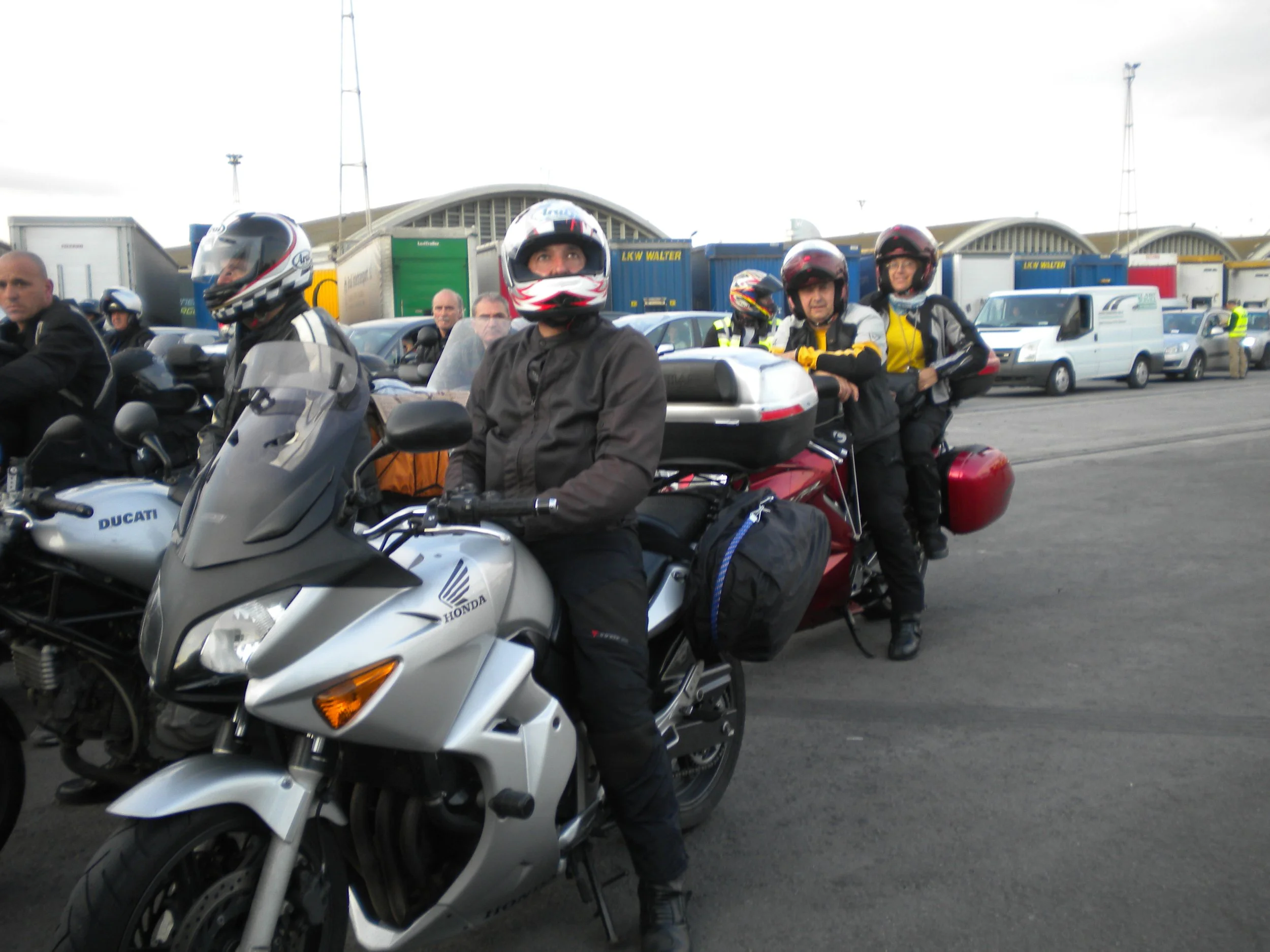 Recomiendo para desembarcar, tener paciencia y esperar a que salgan todos los camiones, o si podéis embarcar las motos las primeras, para que las coloquen en la parte de delante, nosotros fuimos del final, y no pudimos salir hasta que salió prácticamente el ultimo camión, nos comimos todos los gases y con el consiguiente peligro de pasar cuando podíamos entre ellos, pero NO DESESPERARSE, da tiempo de sobra a colocar todo el equipaje en las motos y salir sin problemas.