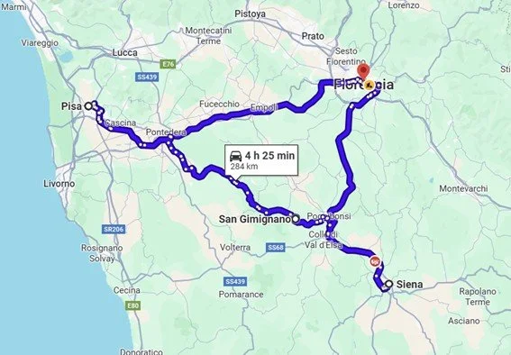 Trayecto realizado en moto. 431 km. Tiempo aprox.: 4 horas y media.