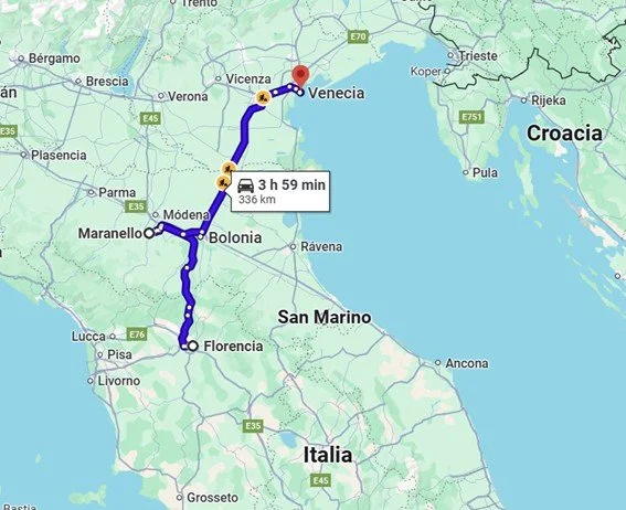 Recorrido realizado en coche con carro portando motos, , tiempo aproximado 10 horas.
