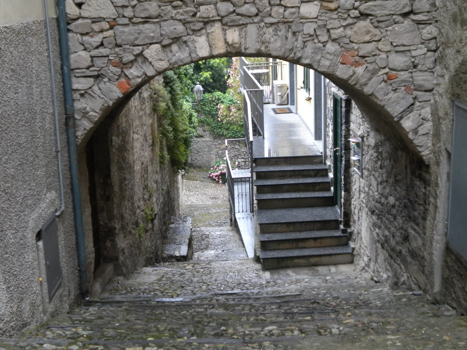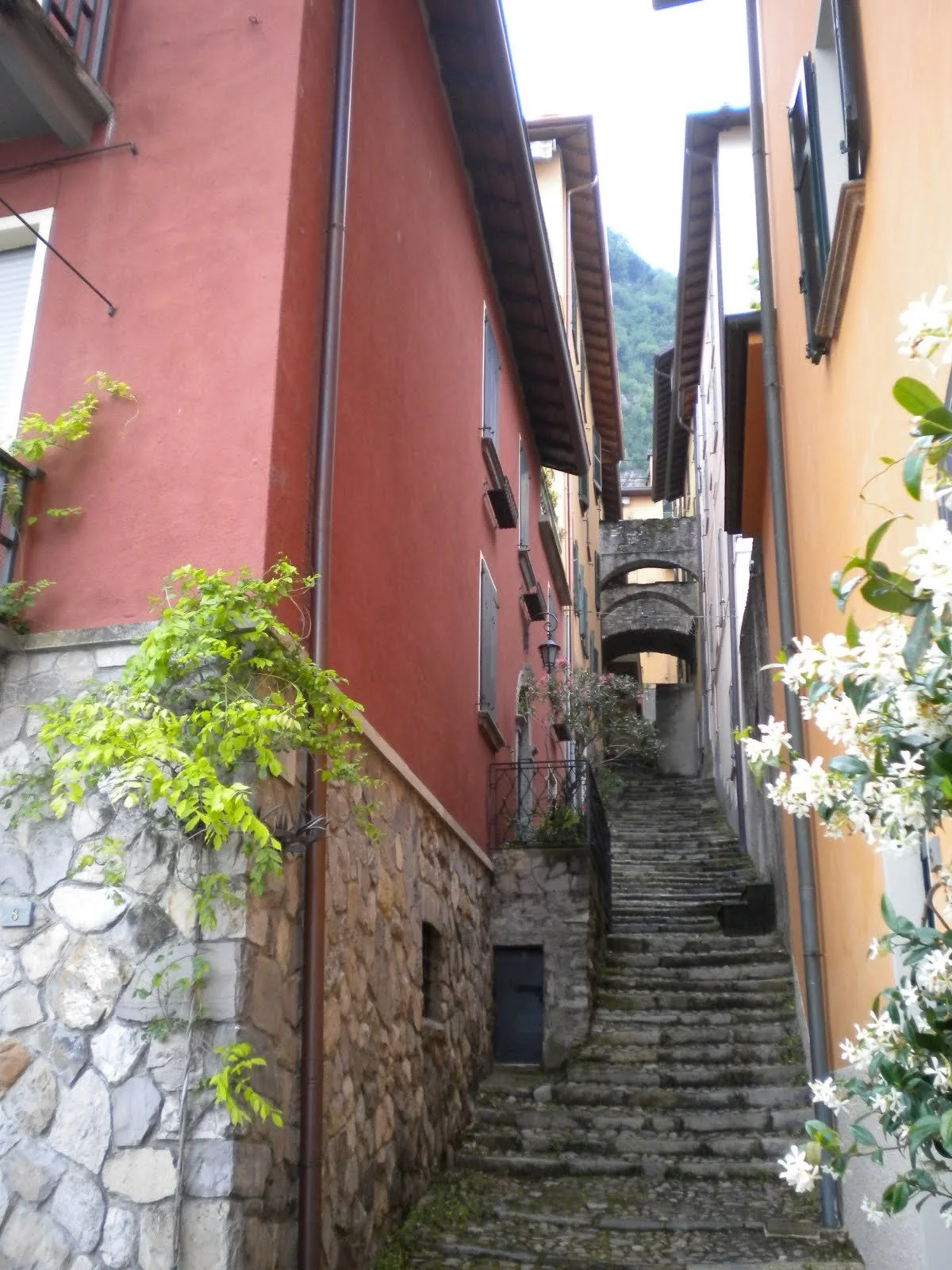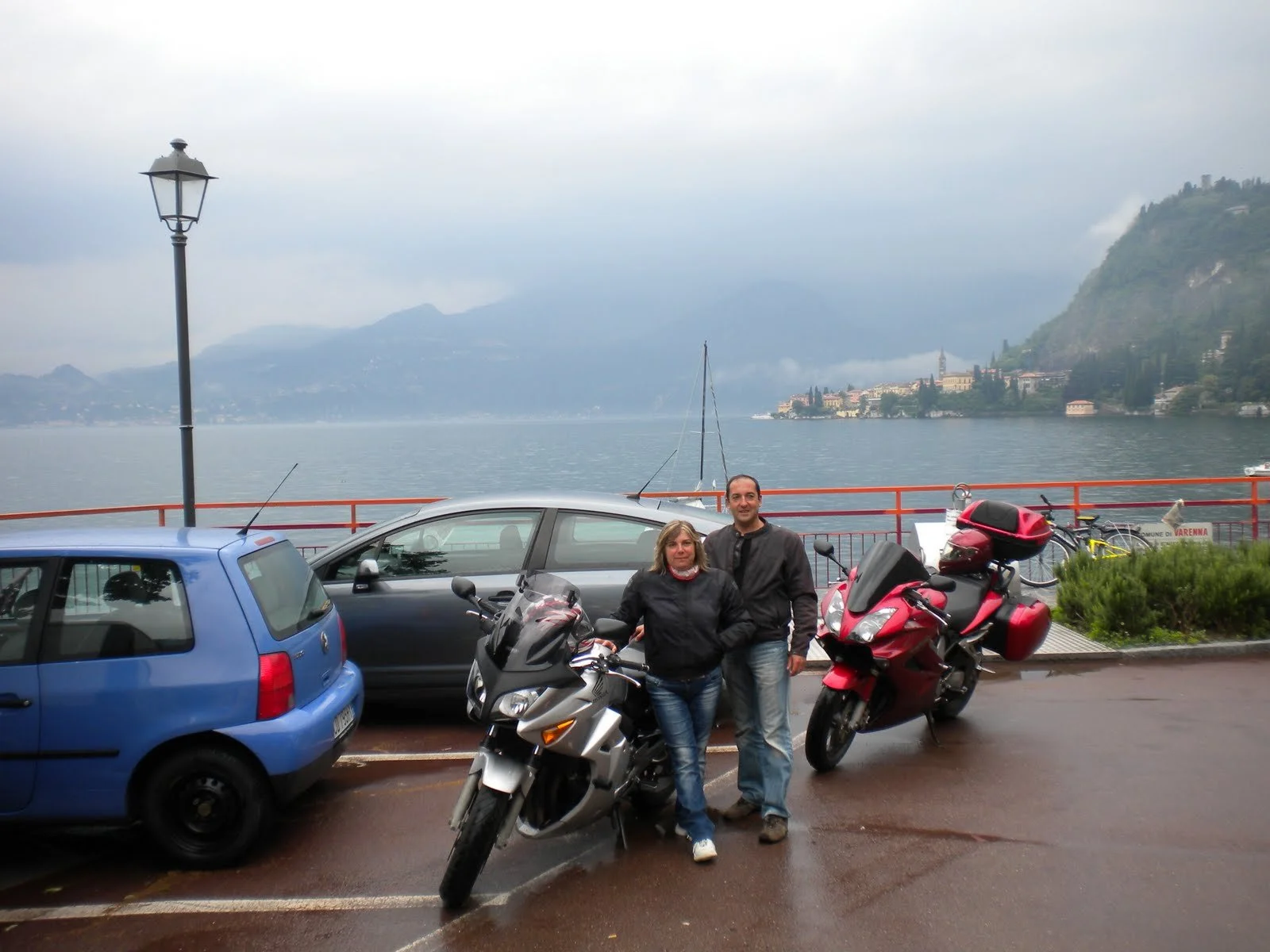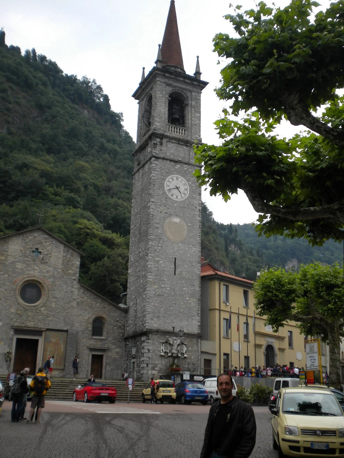 Varenna, muy pintoresco, grande con un buen paseo por la ribera del lago, y barcos que te hacen el recorrido de este, grandes villas. De momento nos acompaña el tiempo, gris pero sin llover, vemos en la iglesia principal una boda con la llegada de la novia en Ferrari
