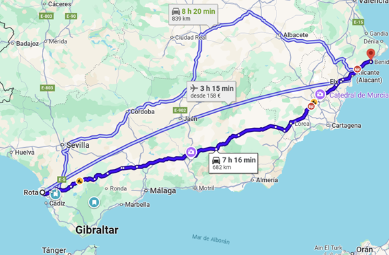 Día 27 de Junio salida dirección Cadiz sobre las 9:20 de la mañana, esto se acaba, parada para repostar, parada para cambio de conductor, parada para comida en área de servicio con un buen menú por 8 euros y llegada a Rota sobre las 18:00, descarga de motos y equipaje y fin de viaje.