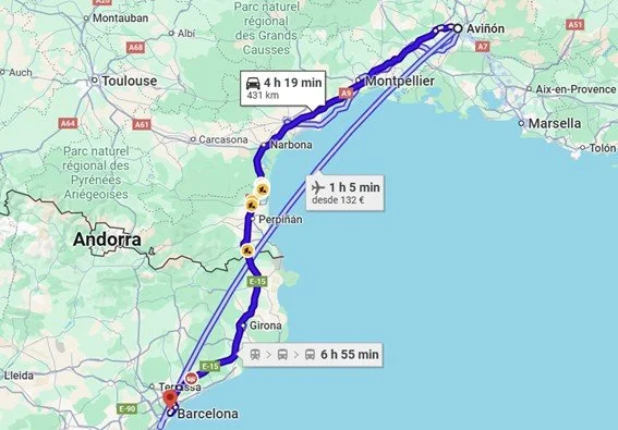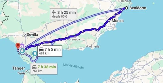 Trayecto realizado coche con remolque. 514 km. Tiempo aprox.: 7 horas 52 minutos. Autopista: 9,40 euros