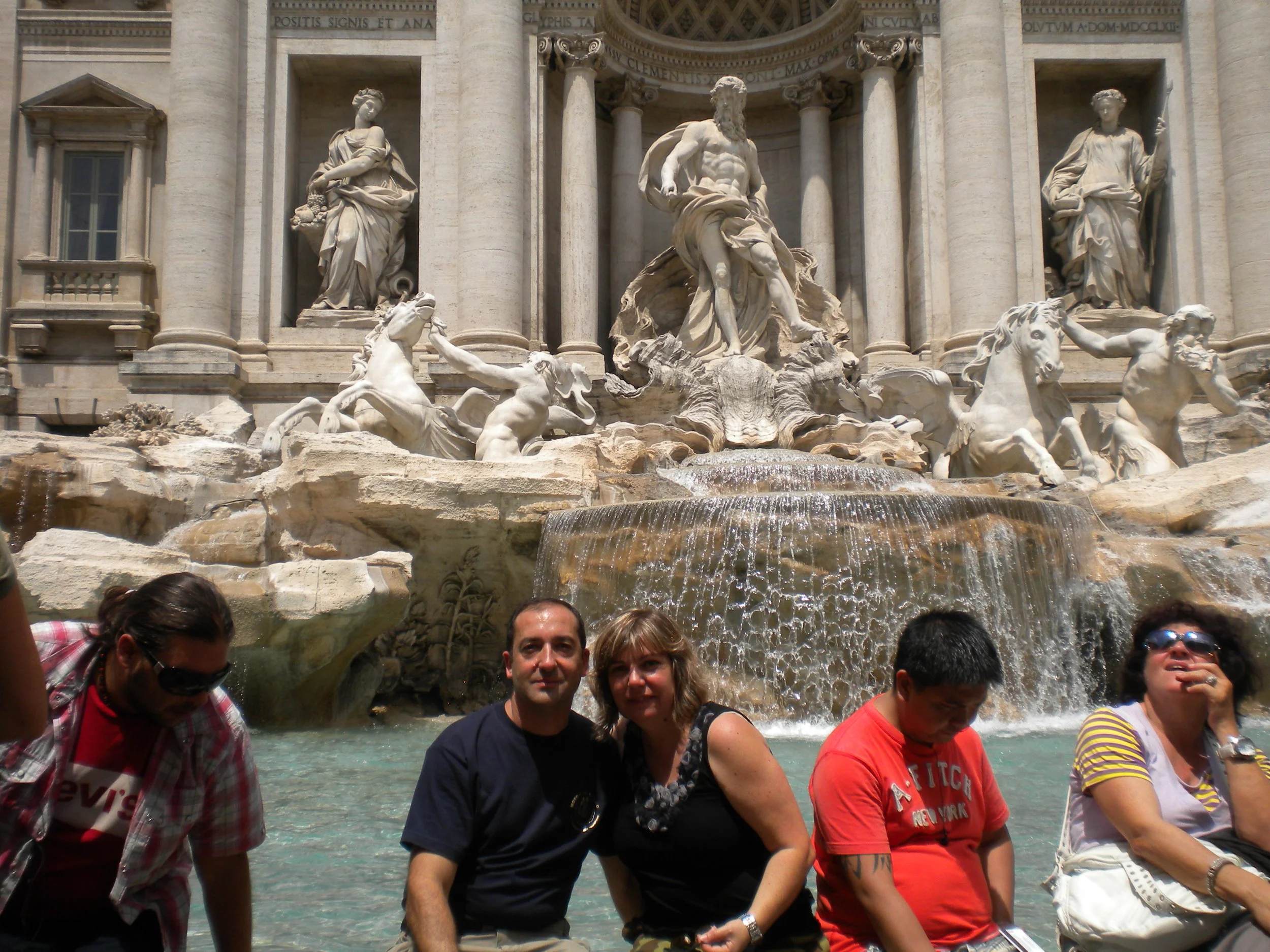 Luego vamos a la Fontana de Trevi situada en una plaza muy pequeña donde confluyen tres calles y para mas estaban con obras, atiborrada de gente que para hacer una foto decente casi hay que pedir turno, ah! y no tiramos moneditas que luego el gobierno italiano dice que es de el. Jose toqueteando con la PDA casi se cae 2 veces