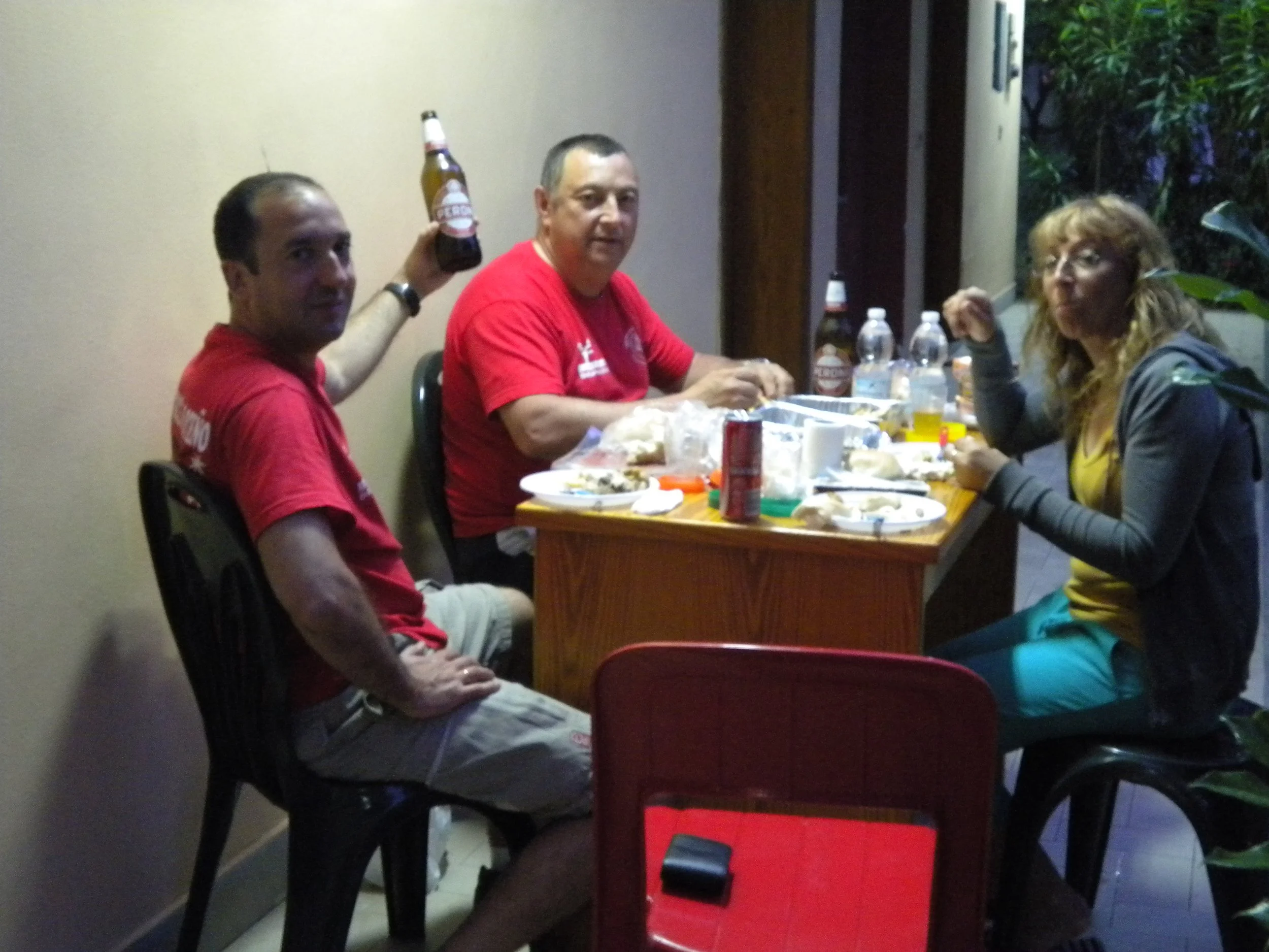 En el trayecto habíamos visto varias trattorias y una parada del autobús, salimos a cenar a las 23:00 a una pizzería cercana, tomamos ( 2 pizzas "las mejores de todo el viaje", 2 calzones y 4 cervezas (18 euros), total 50 euros. A partir de ahora la cerveza caríiiiiiiiisima,