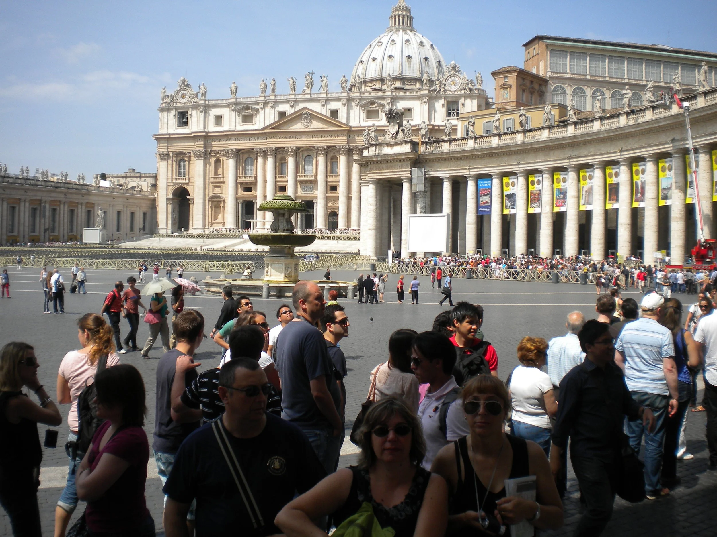 Llegamos a la Plaza de San Pedro, pero hay unas colas larguísimas para entrar en el Vaticano y decidimos dejarlo para el día siguiente y bajar más temprano