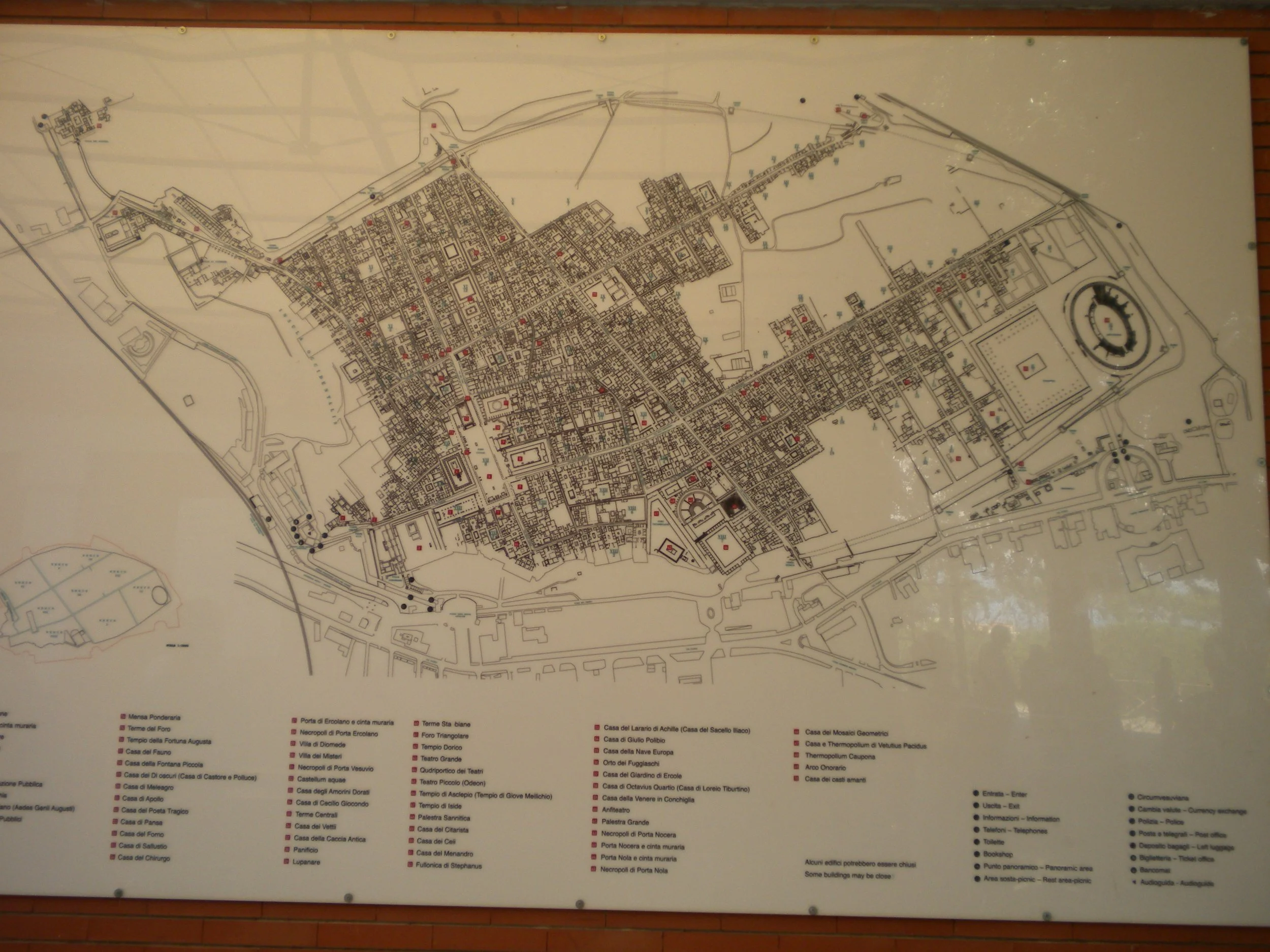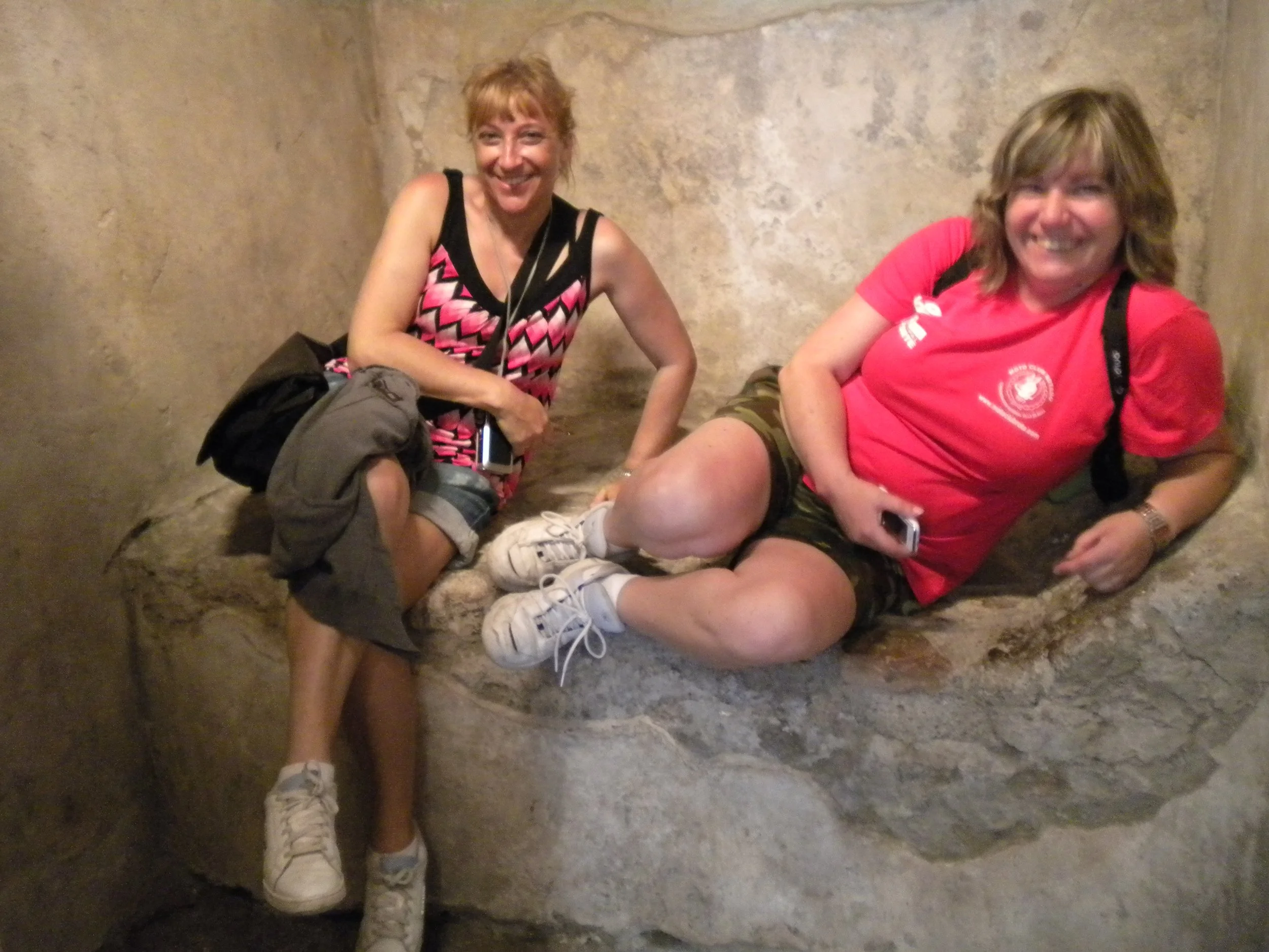 Cinco horas después, estamos derrotados y no hemos visto toda la ciudad, los baños públicos están muy mal indicados. La gente somos un poco morbosas, nos detenemos mas tiempo en la casa del prostíbulo (lupanar) y en la visión de los cuerpos calcinados