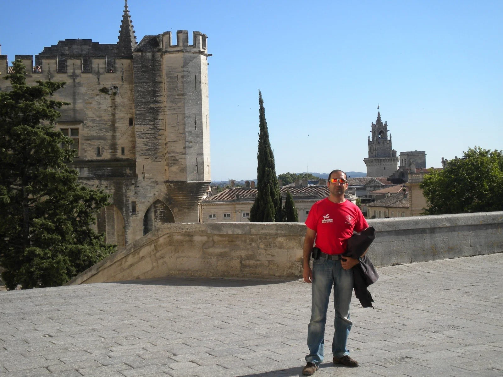 Hoy es día 20 de Junio, hace calor y salimos hacia Avignon, llegamos al mediodia al hotel "Etap", este es un poco más antiguo que el anterior pero tampoco esta mal, conocemos a un madrileño que viaja solo con una Harley Davinson y se va a recorrer parte de Italia, Bélgica. Cuando nos acomodamos Jose y yo nos vamos a comer al centro comercial " Flunch", Fermín y Tere se quedan en el hotel , pican un poco y van a descansar, nosotros decidimos ir visitar la ciudad, es muy bonita y dicen que de ella salieron 13 Papas.