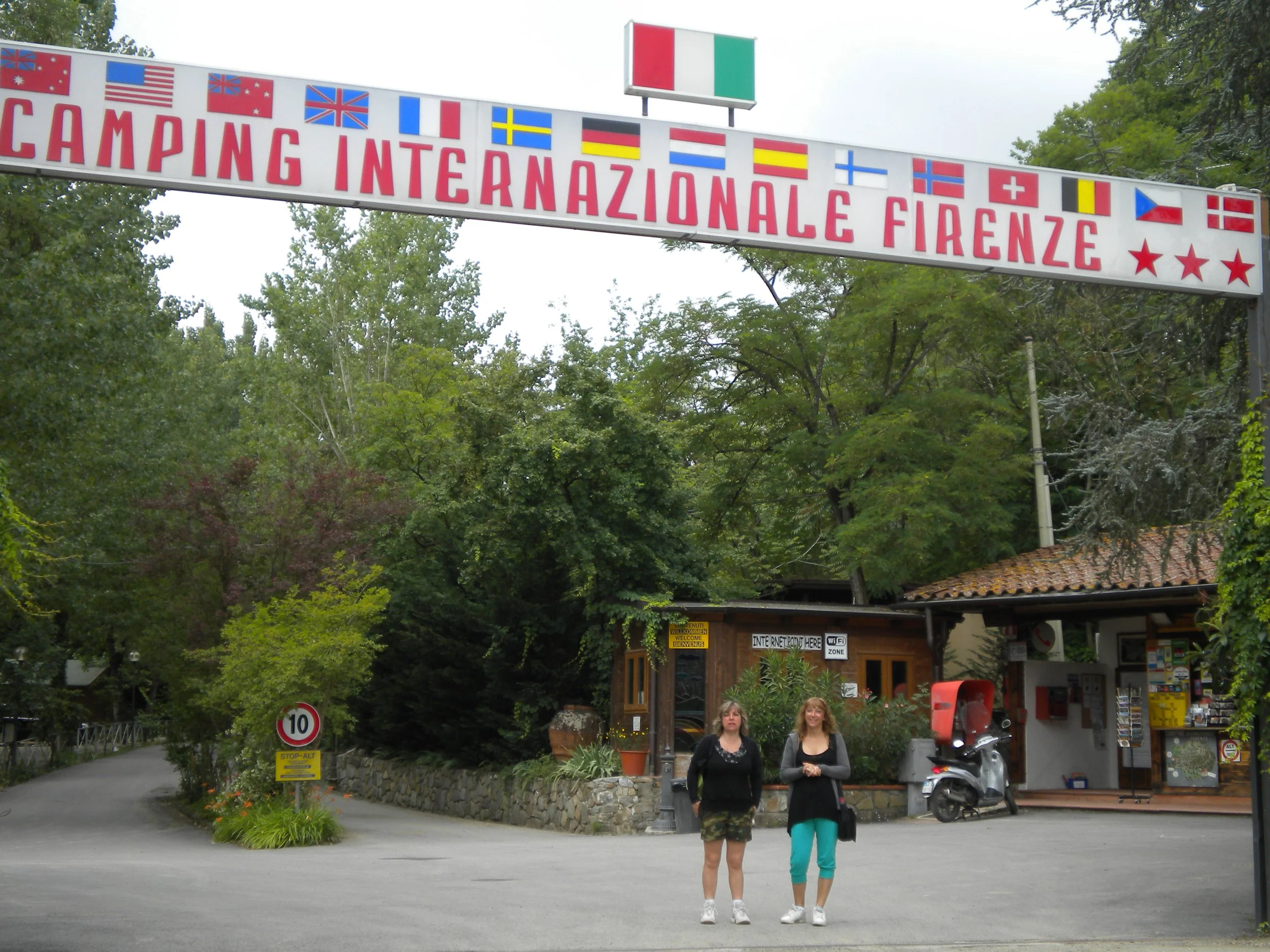 Nada mas llegar comienza de nuevo a llover pero con unas ganas tremendas, nos bajamos al bar del camping y nos invitan a unos aperitivos ( tortilla de espaguetis, pan de pizza y nachos) todo un detalle, no para de llover hasta la cena, nos subimos a una pizzeria pequeña y pedimos unos kebabs, una pizza y unas cervezas, al final volvemos al bar del camping hay un concierto en directo, nos tomamos unas copas y bailamos hasta las 24:15 cuando finaliza el concierto, tenían una marcha estos italianos que no veas, parecía que estuviésemos en España.