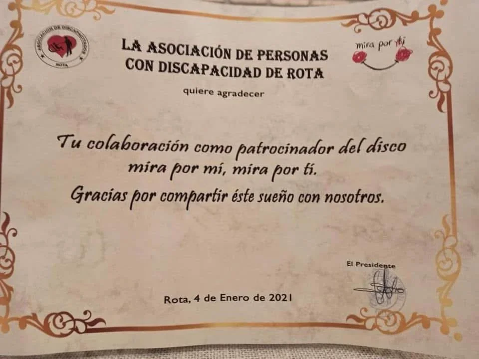 Resaltar, la gran labor realizada durante todo el año desde la asociación "AROFI", Asociación de Enfermos de Fibromialgia, Fatiga Crónica e Intolerancia Química Múltiple de Rota (Cádiz). Organización sin ánimos de lucros, donde hemos colaboramos con la entrega de una aportación económica.